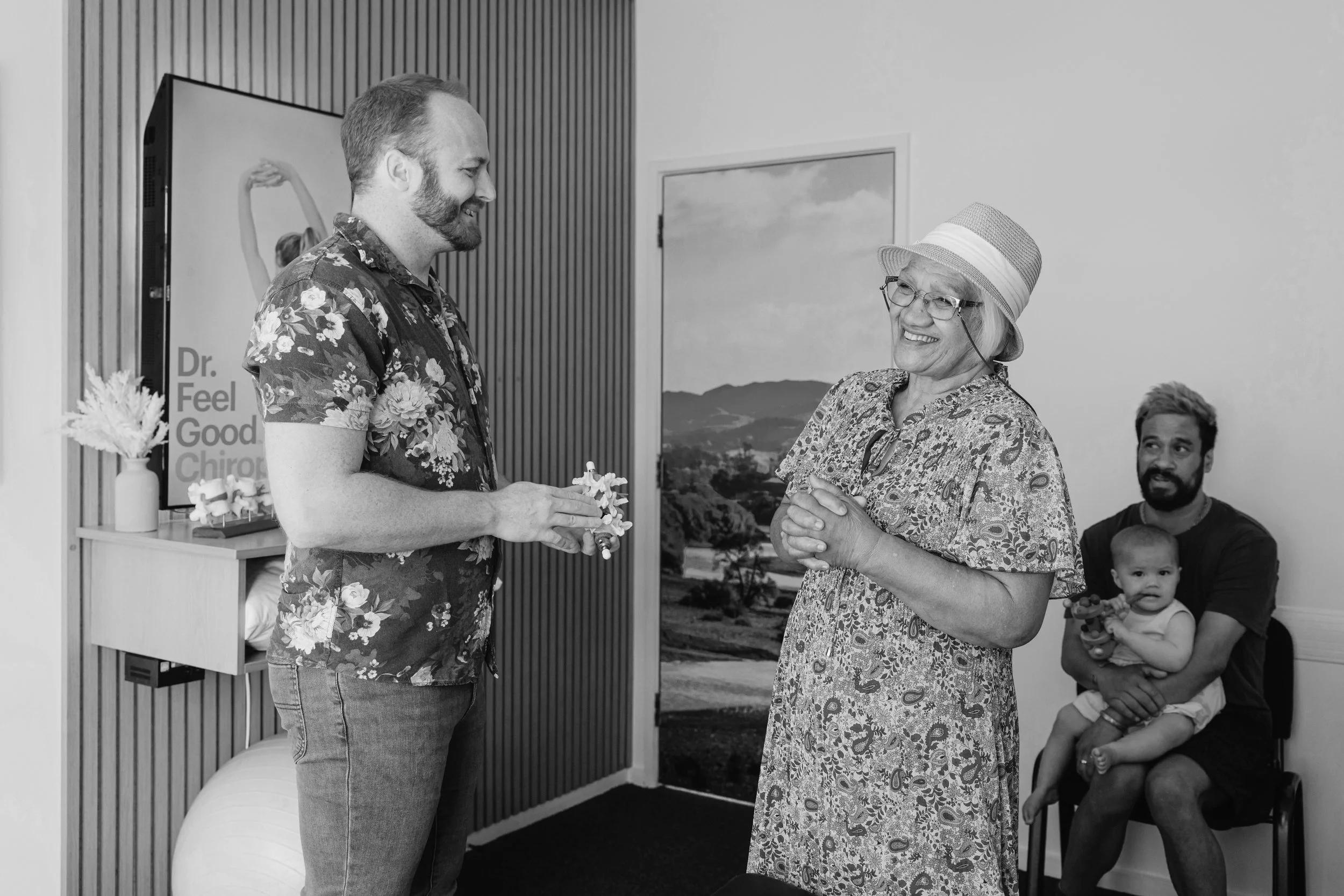 Dr. Feel Good checks babies to gently improve the movement of their spine and their nerve system function to help them feel their best (less pain, and more settled and relaxed), improve feeding, and support healthy growth and development, so that they can thrive.